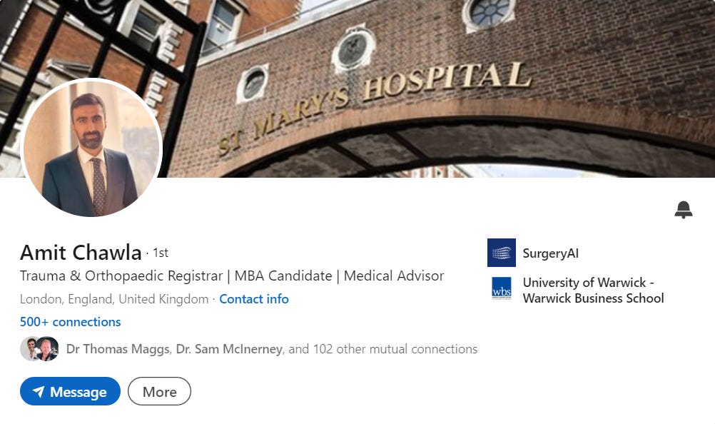 My contributions to SurgeryAI have included reviewing their product and suggesting modifications based on my surgical experience. I have also introduced them to other surgical and managerial colleagues, and like-minded HealthTech founders within my network. This has allowed them to broaden their experience with the NHS market and form valuable connections. Furthermore, I have attended meetings with other key stakeholders to offer a clinical perspective, and am assisting them towards securing pilots in surgical departments.